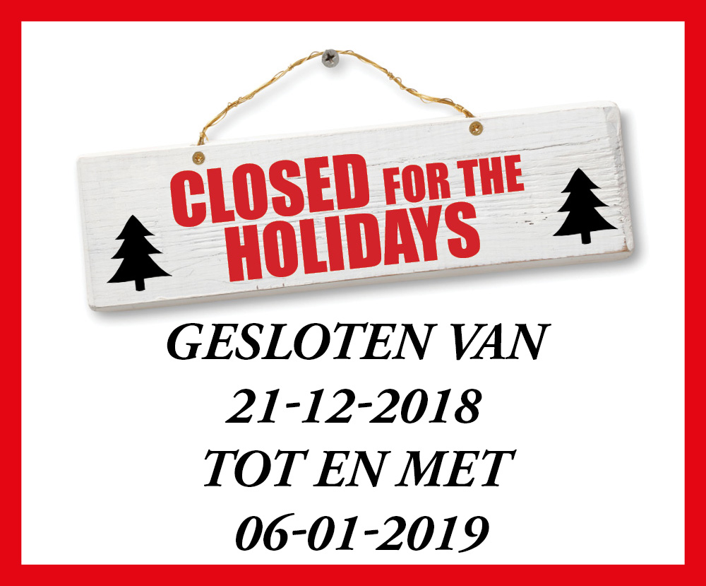 Wegens vakantie zijn wij gesloten. Uw bestellingen worden vanaf 21 november weer verzonden.